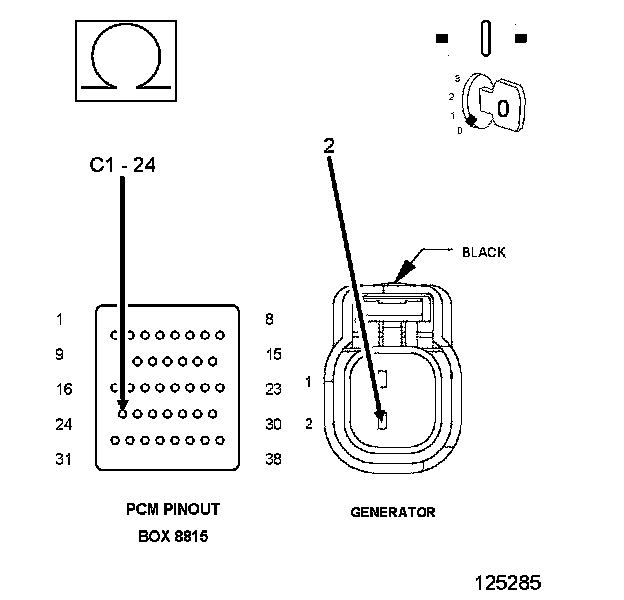 1. Using the wiring diagram/schematic as a guide, inspect the wiring and connectors between the Generator and the Powertrain Control Module (PCM).