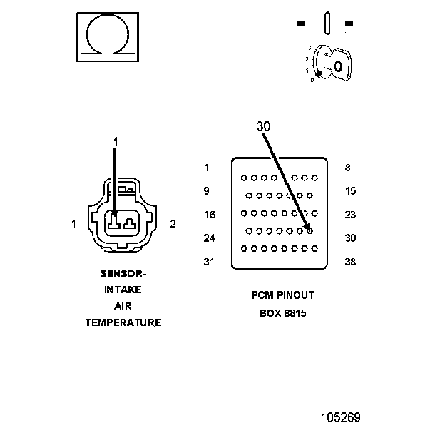 2. Using the wiring diagram/schematic as a guide, inspect the wiring and connectors between the related Sensors and the Powertrain Control Module (PCM).