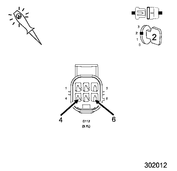 5. Using a 12-volt test light connected to the (Z42) Ground circuit, probe the (K454) MDS Solenoid No.7 Control circuit in the C112 In-line harness connector.