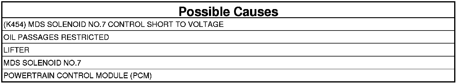 - Repair the short to voltage in the (K454) MDS Solenoid No.7 Control circuit.