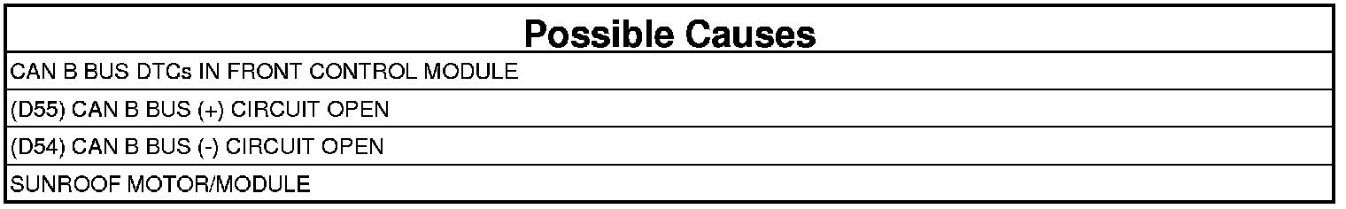 - Repair the (D55) CAN B Bus (+) circuit for an open.