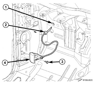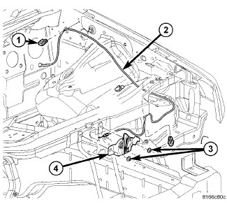 2. Position the hood release handle (4) onto the cowl trim panel.