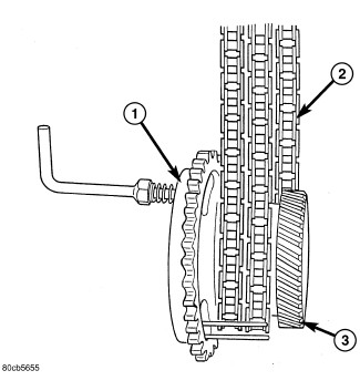 CAUTION: Remove excess oil from camshaft sprocket retaining bolt before reinstalling bolt. Failure to do so may cause over-torquing of bolt resulting in bolt failure.