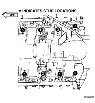 NOTE: New clamps must be used on exhaust manifold flanges. Failure to use new clamps may result in exhaust leaks.