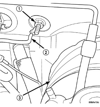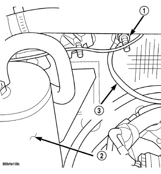 13. Connect the engine to body ground straps at the left side of the cowl.