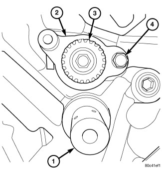 Remove the retaining bolt (4) from the balance shaft thrust plate (2).
