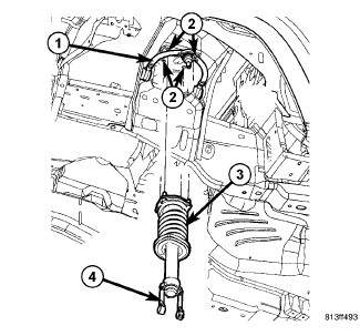 12. Remove the lower clevis bolt (3) at the lower control arm.