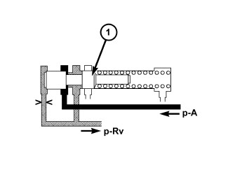 The regulating valve pressure regulating valve (1) is located in the valve housing of the electrohydraulic control module. It regulates the regulating valve/control valve pressure (p-RV).
