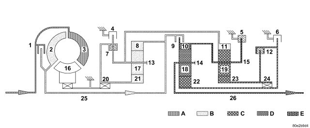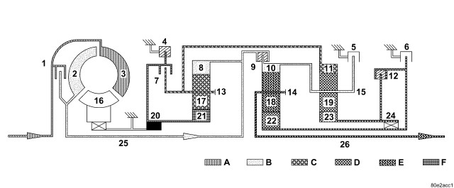 With the engine started and the gearshift lever in the NEUTRAL or PARK positions, holding clutch B1 (1) and driving clutch K3 (4) are applied and the various valves in the 1-2/4-5 shift group are positioned to apply pressure to the holding clutch B2.