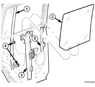 3. Using the regulator (2), move the rear door glass to full up.