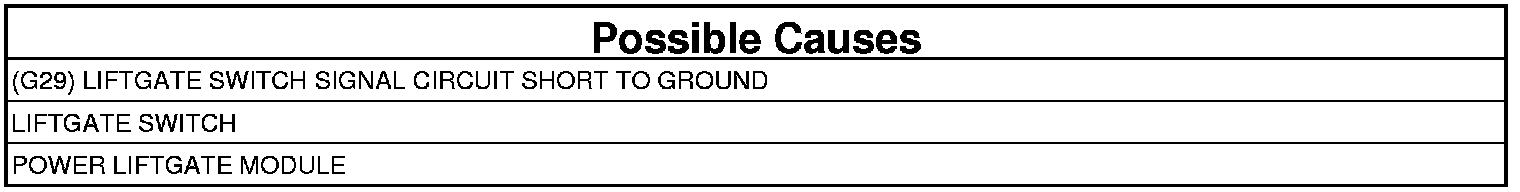 - Repair the (G29) Liftgate Switch Signal circuit for a short to ground.