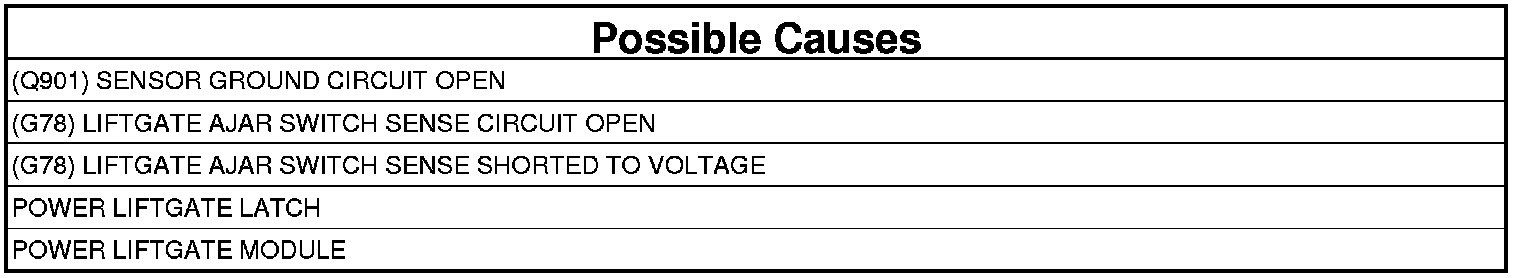 - Repair the (G78) Liftgate Ajar Switch Sense circuit for an open.