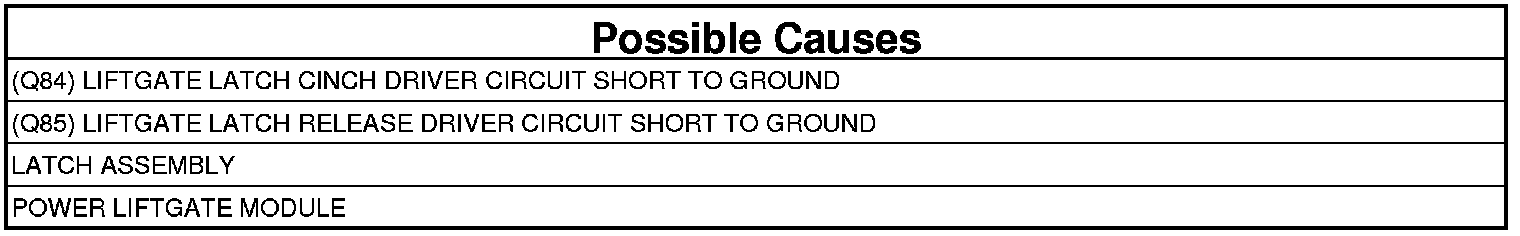- Repair the (Q85) Liftgate Latch Release Driver circuit for a short to ground.