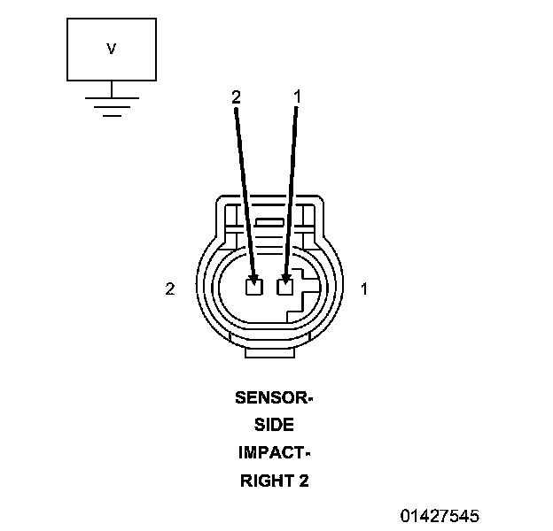 1. Measure the resistance between the (R18) Right Side Impact Sensor 2 Signal and (R20) Sensor Ground circuits at the Right Side Impact Sensor 2 connector.