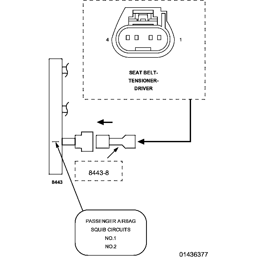 1. Disconnect the SRS Load Tool Kit 8443 and SRS Load Tool Jumper 8443-20 from the Driver Seat Belt Tensioner connector.