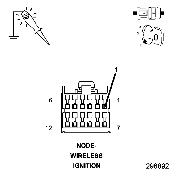 4. Using a 12 volt test light connected to ground, probe the Fused (B+) circuit in the WIN harness connector.