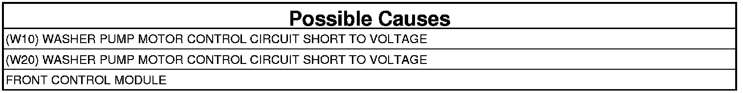 - Repair the (W20) Washer Pump Motor Control circuit for a short to voltage.