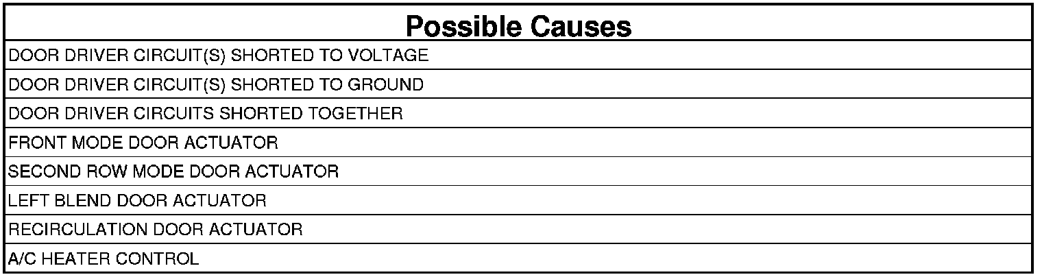 If the A/C Heater Control detects an excessive current draw on any of the door driver circuits while attempting to drive this door actuator. Note that only one overcurrent DTC can set per ignition cycle.