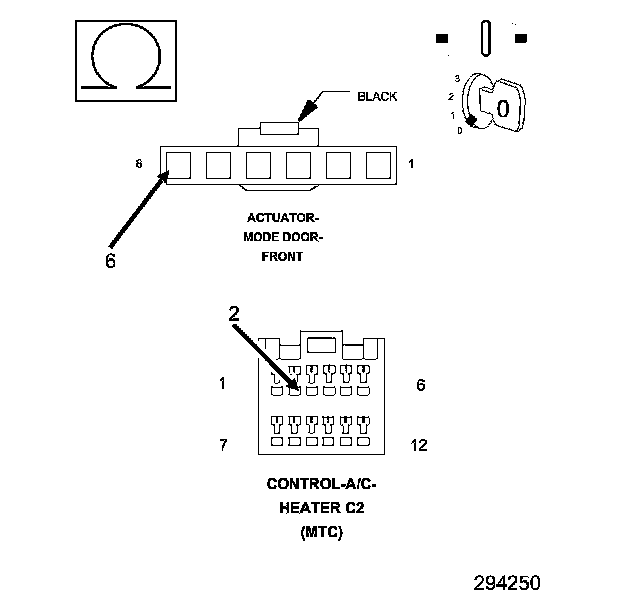 The purpose of actuator calibration is to determine the total span of door travel between physical stops. To calibrate the actuator, the A/C Heater Control first moves the door to its soft stop, and then counts the number of pulses it takes to move the door to its other stop. An expected range of span is stored in the control's memory. If the A/C Heater Control detects no commutator pulses when calibrating the front mode door, this DTC will set.