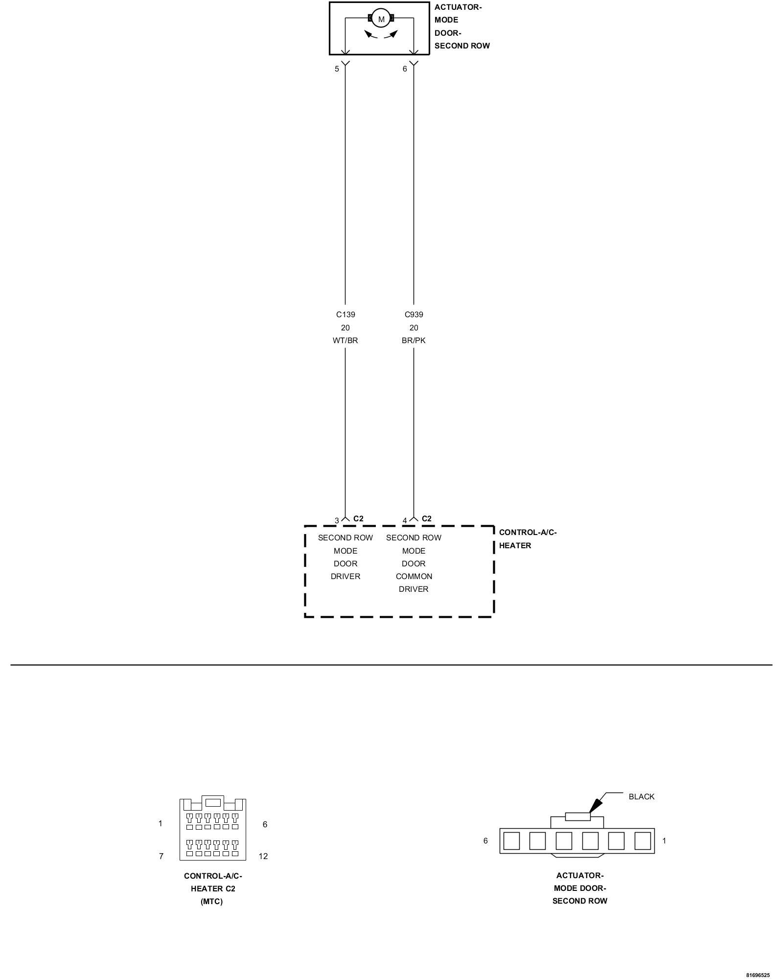 - Repair the (C939) Second Row Mode Door Common Driver circuit for an open.