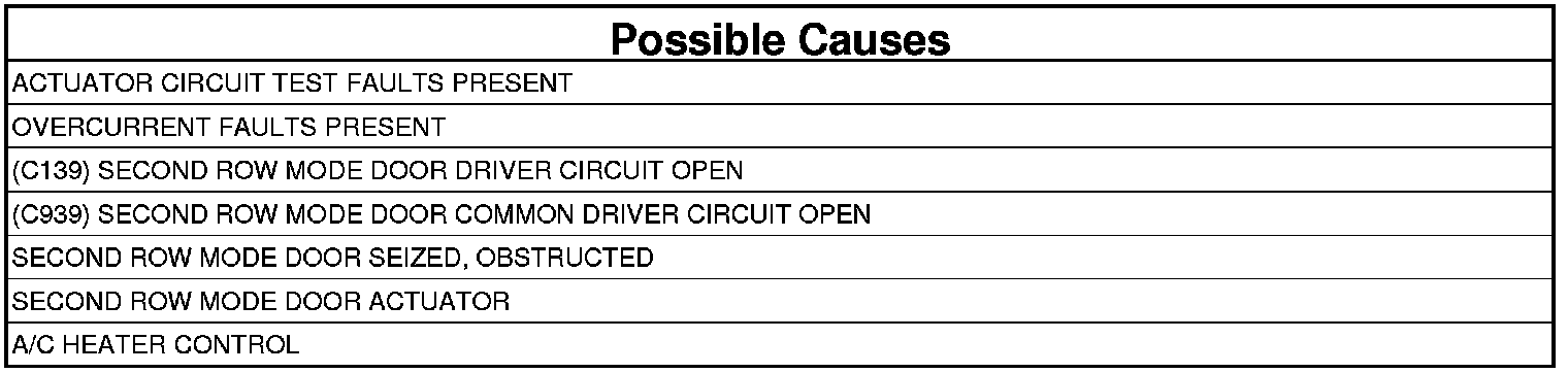- Repair the (C139) Second Row Mode Door Driver circuit for an open.