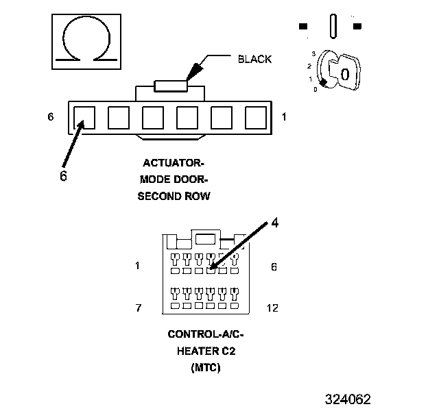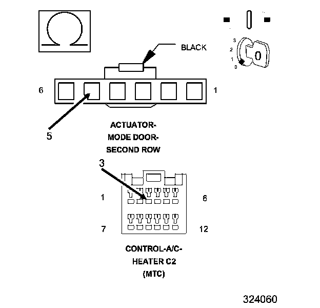 The purpose of actuator calibration is to determine the total span of door travel between physical stops. To calibrate the actuator, the A/C Heater Control first moves the door to its soft stop, and then counts the number of pulses it takes to move the door to its other stop. An expected range of span is stored in the control's memory. If the A/C Heater Control detects no commutator pulses when calibrating the second row mode door, this DTC will set.