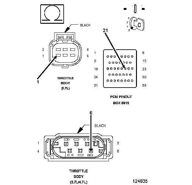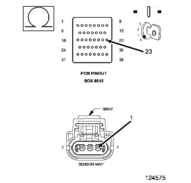 1. Using the wiring diagram/schematic as a guide, inspect the wiring and connectors between the MAP Sensor, Throttle Body, and the Powertrain Control Module (PCM).