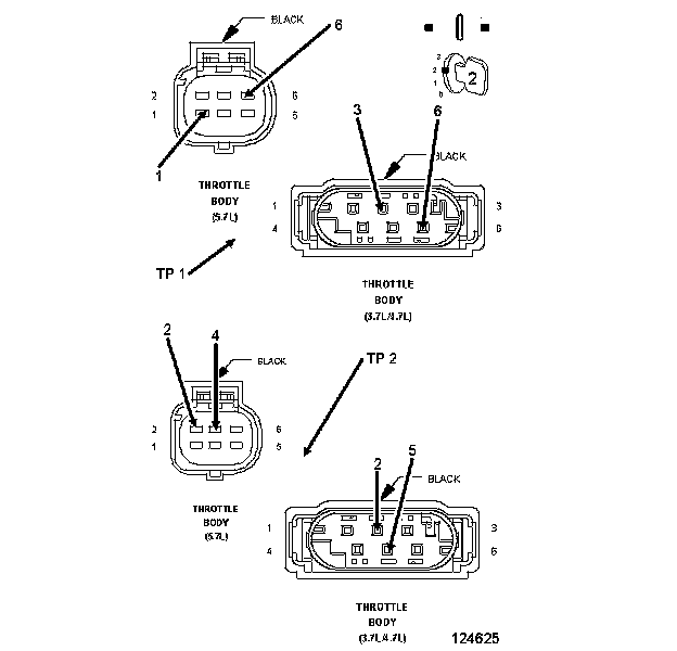 3. Look for broken, bent, pushed out or corroded terminals. Verify that there is good pin to terminal contact in the MAP Sensor, Throttle Body, and Powertrain Control Module connectors.