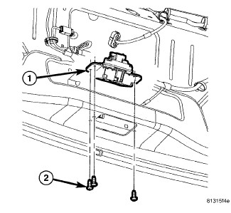 2. Install and tighten the three bolts (2) that secure the latch (1) to the studs on the inside of the liftgate.