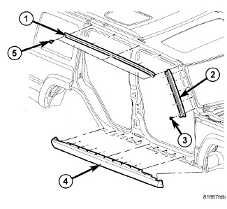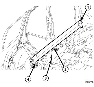 Install the front (1) and rear (4) rivets from inside the wheel wells.