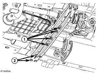1. Install the crossmember and install the eight crossmember bolts (2).