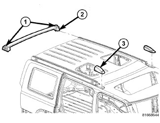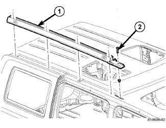 5. On vehicles equipped with rear grab handles (2), position the upper cover (1) into the roof rack rail and seat fully.