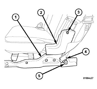 2. Install and tighten the screw (5) that secures the lower anchor to the seat support bracket. Tighten the screw to 43 Nm (32 ft. lbs.).