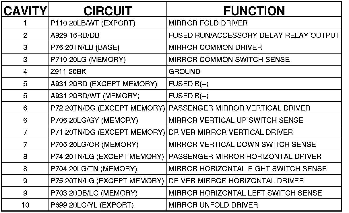 SWITCH-MIRROR - (DRIVER DOOR JUMPER) 10 WAY