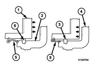 During brake application, the seal is deflected outward by fluid pressure and piston movement(6). When the brakes (and fluid pressure) are released, the seal relaxes and retracts the piston (3).