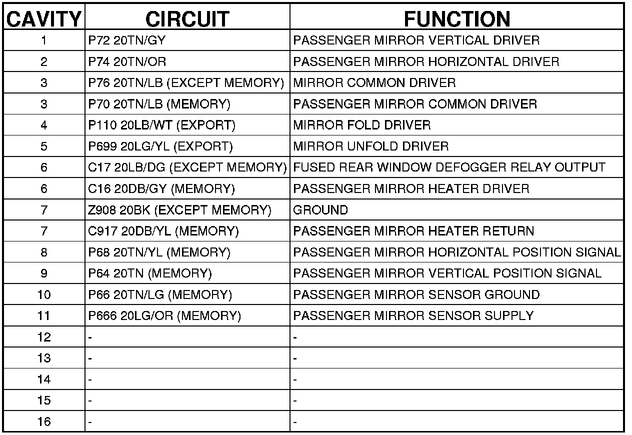 Passenger Outside Rearview Mirror (Passenger Door Jumper) 16 Way