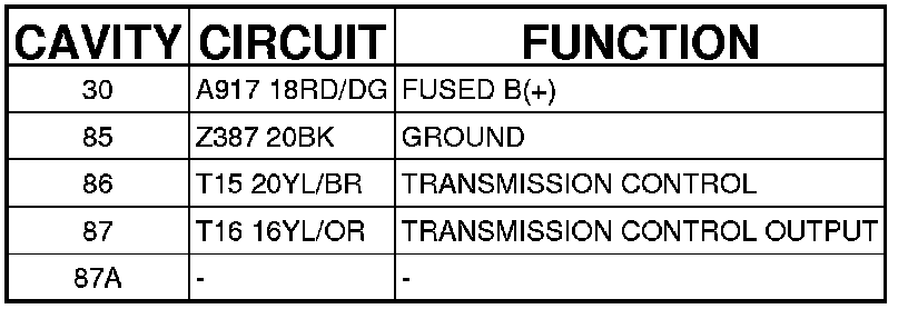 Transmission Control System Relay, A/T