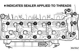 NOTE: The four M8 cylinder head mounting bolts (11 - 14) require sealant to be added to them before installing. Failure to do so may cause leaks.
