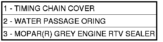 CAUTION: The 4.7L can use a special RTV sealer instead of a carrier gasket to seal the timing cover to the engine block, from the factory. For service repairs, Mopar(R) Grey Engine RTV must be used as a substitute, if RTV is present. If the front cover being used has no provisions for the water passage o-rings, then Mopar(R) Grey Engine RTV must be applied around the water passages.