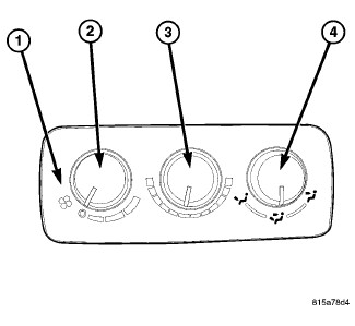 - a rotary control knob for fan speed selection and turning the rear heating-A/C system off (2).