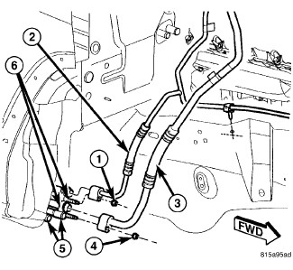 NOTE: Replacement of the refrigerant line O-ring seals and gaskets is required anytime a refrigerant line is disconnected. Failure to replace the rubber O-ring seals and metal gaskets may result in a refrigerant system leak.