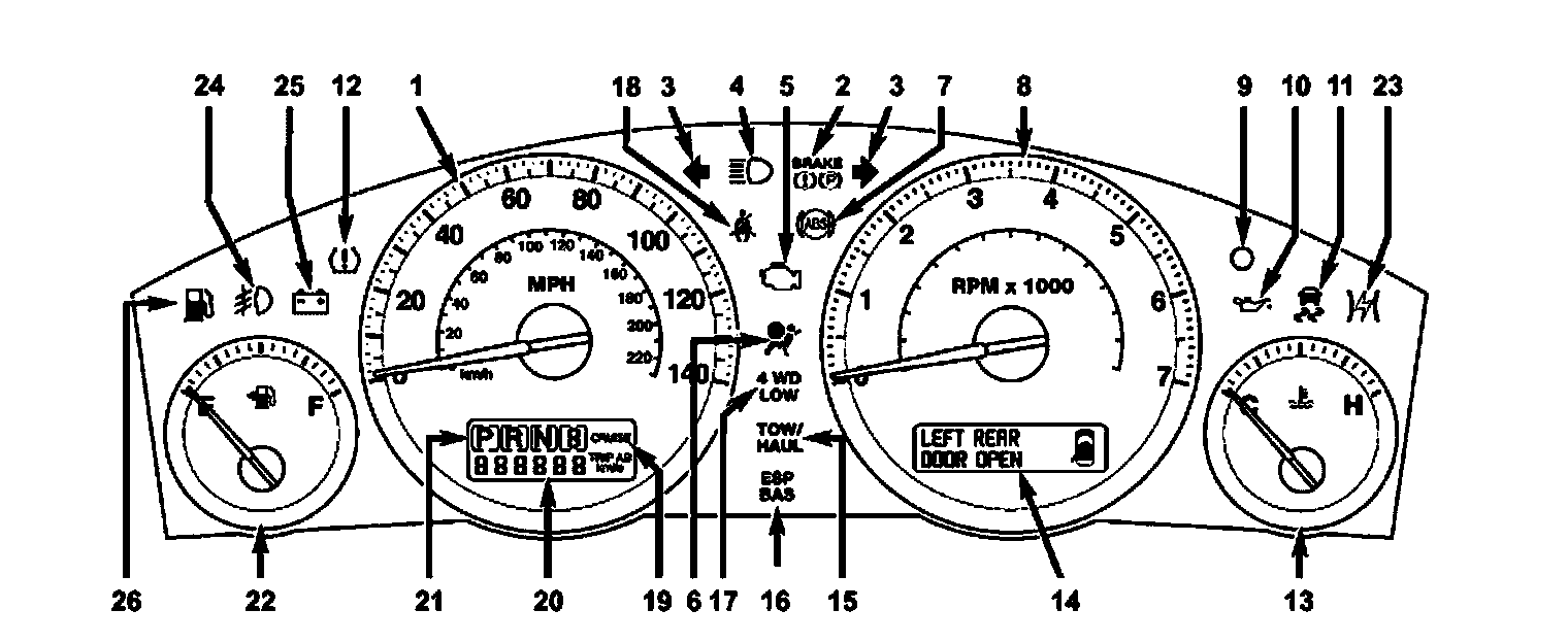 16. Electronic Stability Program (ESP) Warning Light/Brake Assist System (BAS) Warning Light