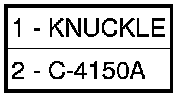 12. Separate the lower ball joint from the knuckle (1) using tool C-4150A (2).