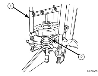 2. Install the shock assembly in the Branick 7200(R) spring removal/installation tool or equivalent (1).