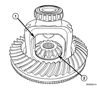 2. Install differential side gears (2) and thrust washers.