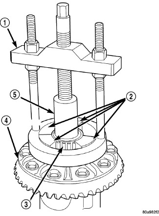 Remove differential bearings (3) from the case with Puller/Press C-293-PA (1) and Adapters C-293-48 (2) and Plug SP-3289 (5).