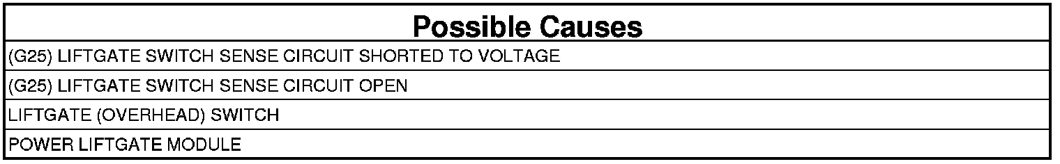 When the Power Liftgate Module senses a voltage over 4.7 Volts on the (G25) Liftgate Switch Sense circuit, this code will set.
