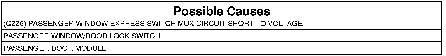 3. (Q336) PASSENGER WINDOW EXPRESS SWITCH MUX WIRE SHORT TO VOLTAGE
