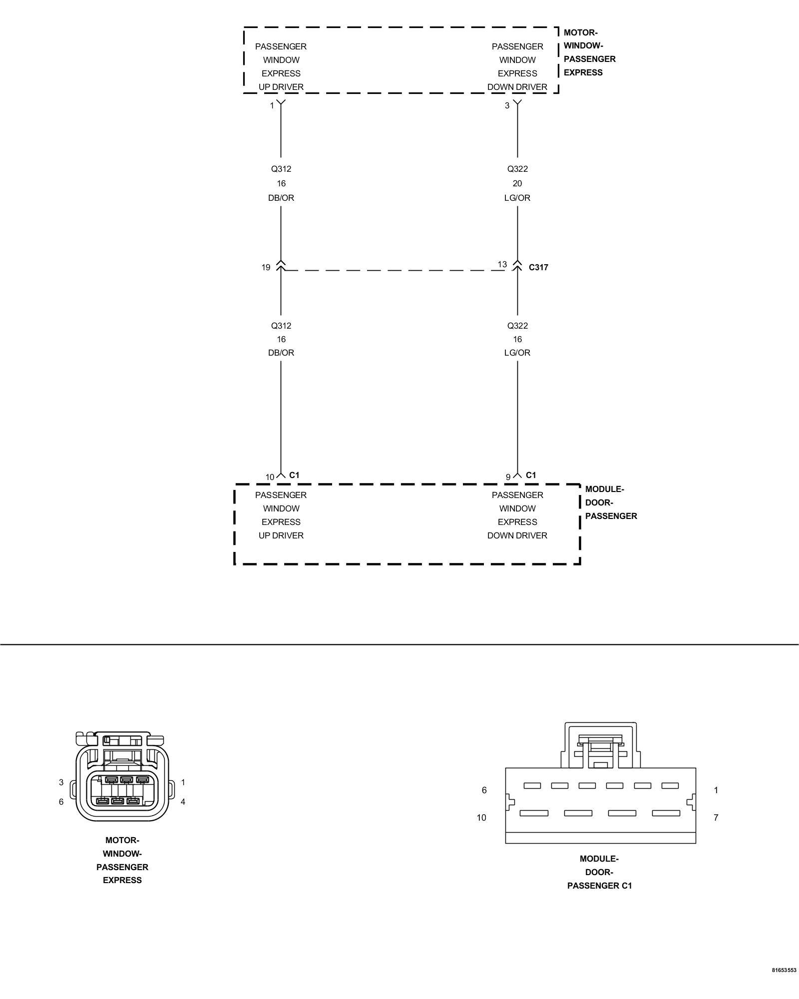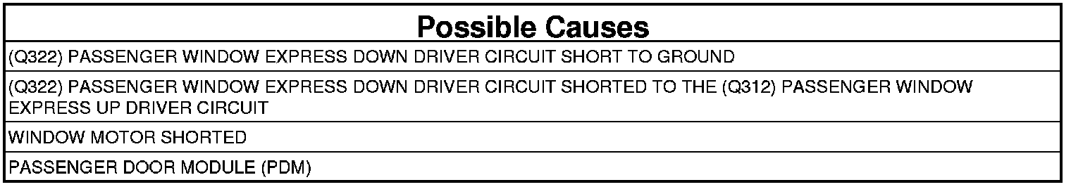 4. (Q322) PASSENGER WINDOW EXPRESS DOWN DRIVER CIRCUIT SHORT TO (Q312) PASSENGER WINDOW EXPRESS UP DRIVER CIRCUIT