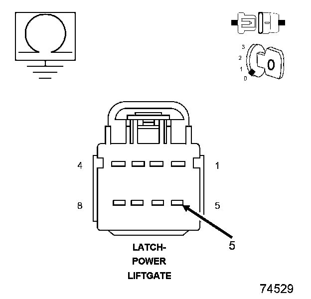 4. Measure the resistance between ground and the (Q901) Logic Ground circuits in the Power Liftgate Latch harness connector.